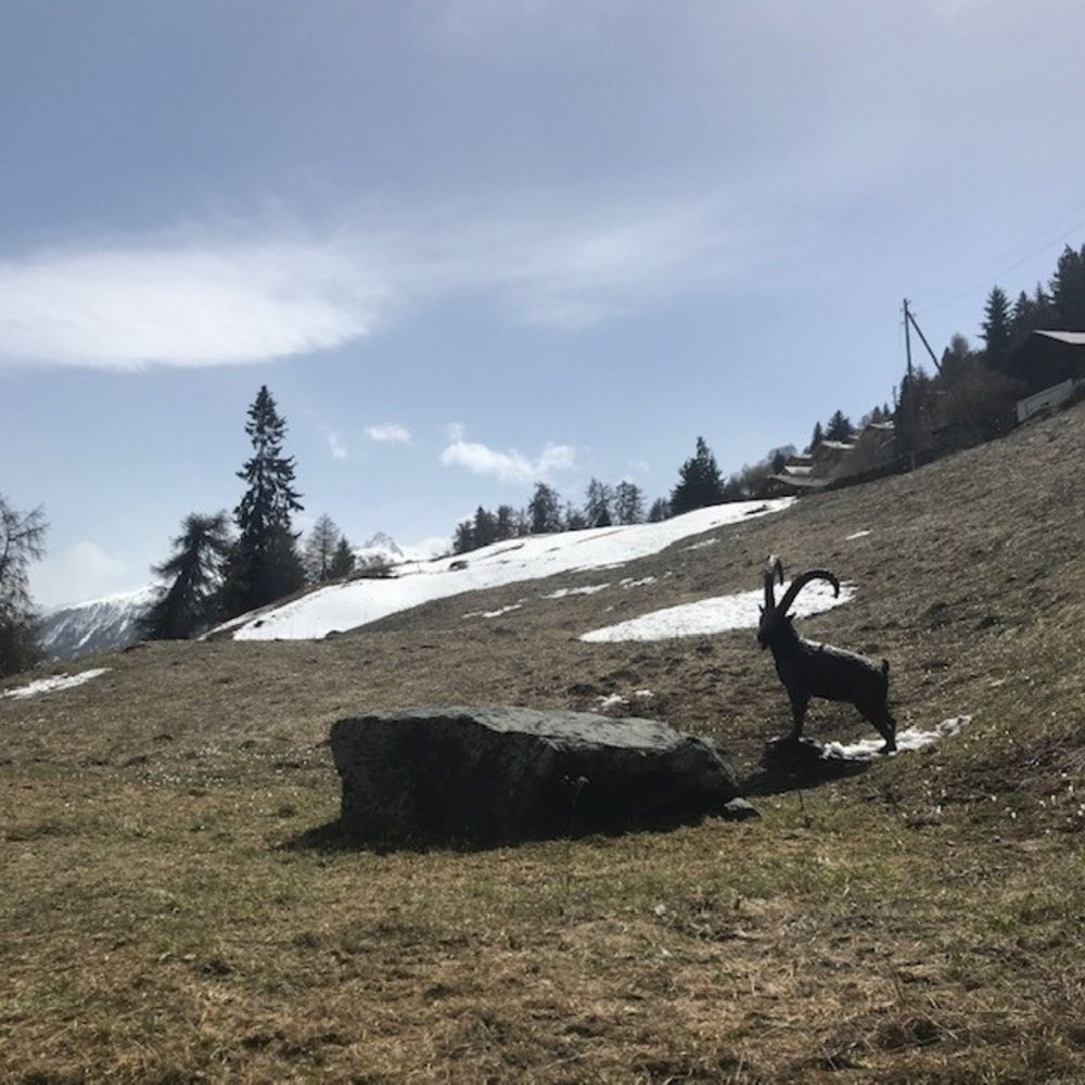 "Jean - Paul" (so haben wir Ihn getauft) hat seinen Platz gefunden. Er steht auf der Wiese vor der Terrasse und blickt glücklich herab auf das Rhonetal :-)